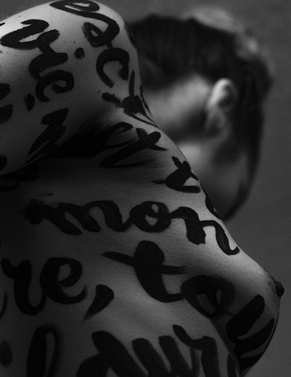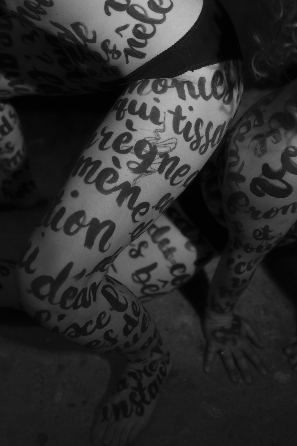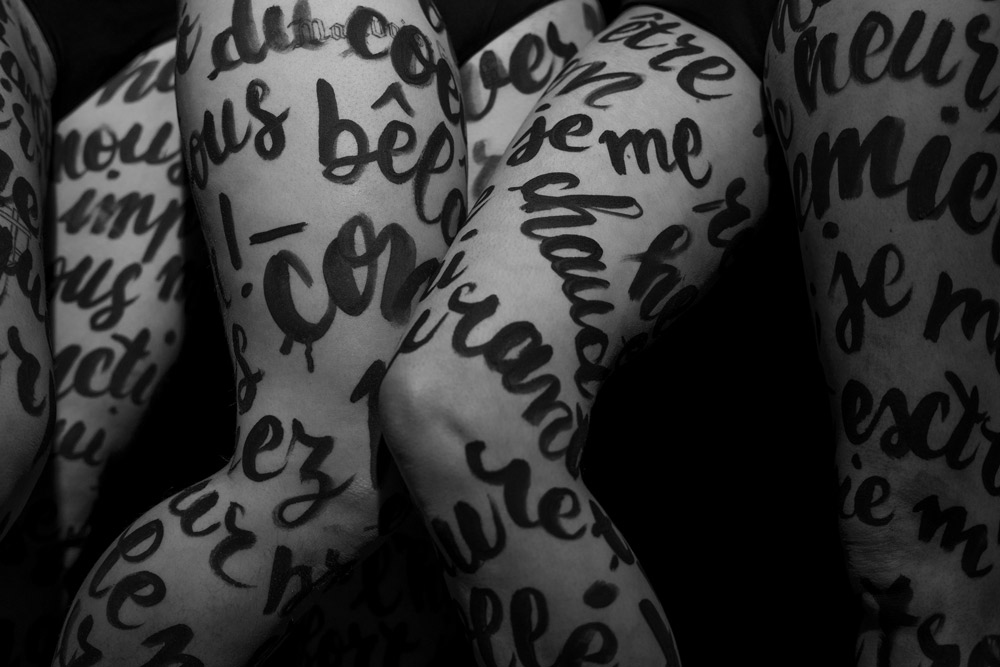 Trois poèmes ont orné les corps de mes copines: «Child wife» de Paul Verlaine, «Tant de corps et tant d’âme» d’Andrée Chedid et «Je vis, je meurs: je me brûle et me noie» de Louise Labé. Elles portaient un poème, comme on porterait un vêtement. Sur les photographies, des extraits de chaque poème se mêlaient et se recomposaient. Nous nous sommes inspirés des Trois Grâces, mais en leur apportant notre propre interprétation à travers ces textes, la mise en scène et le choix du décor.»