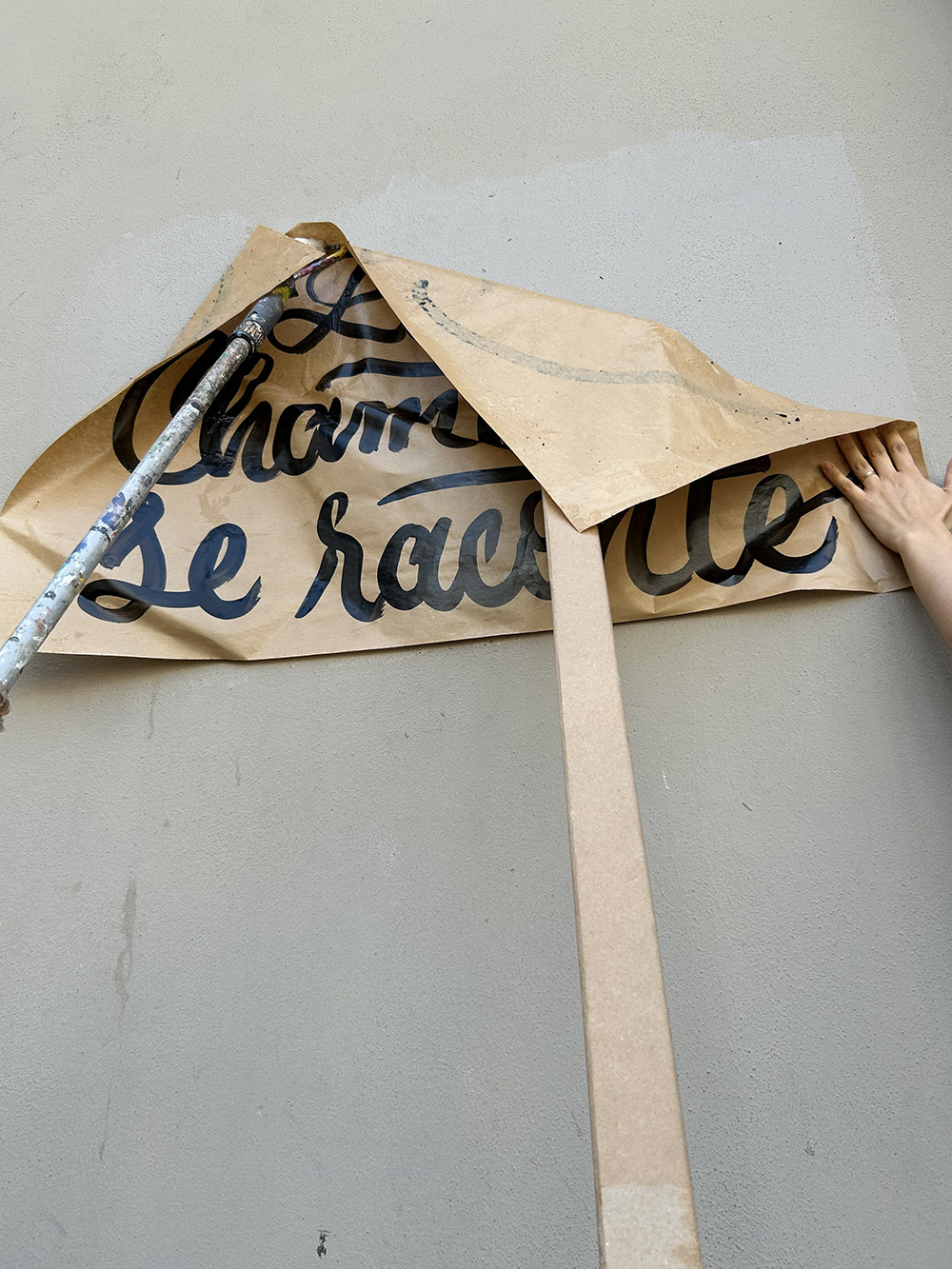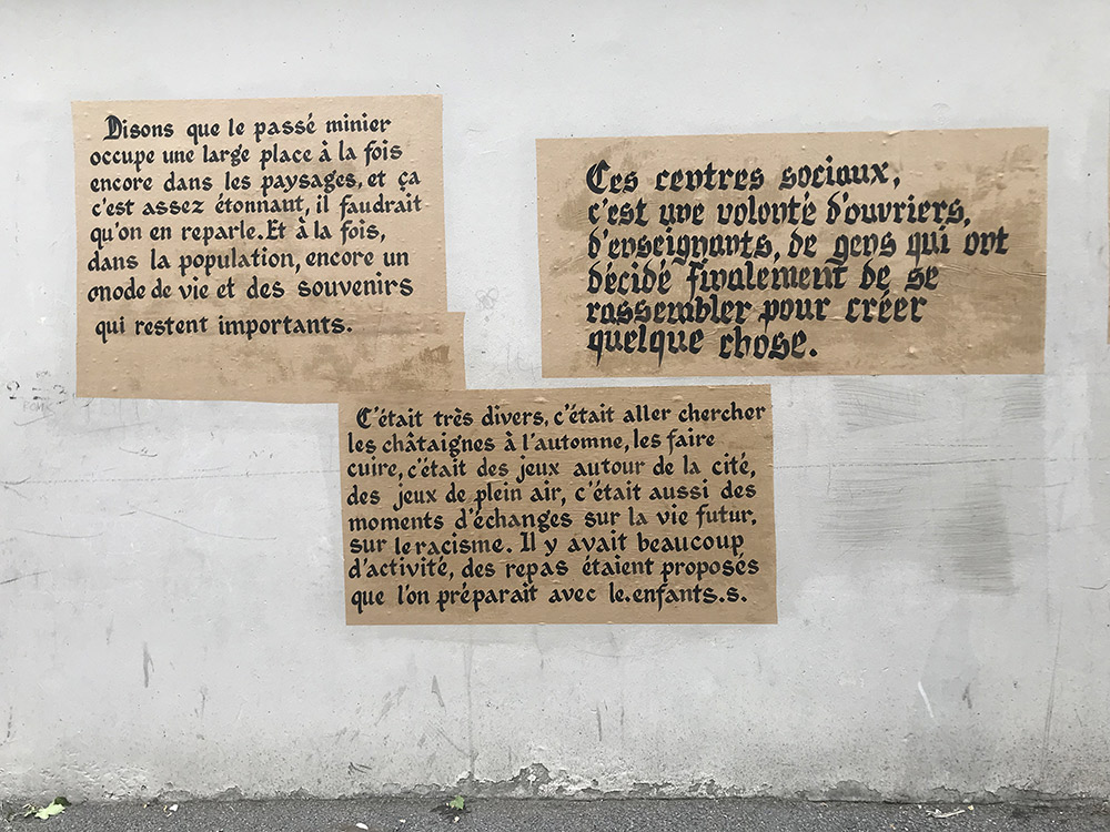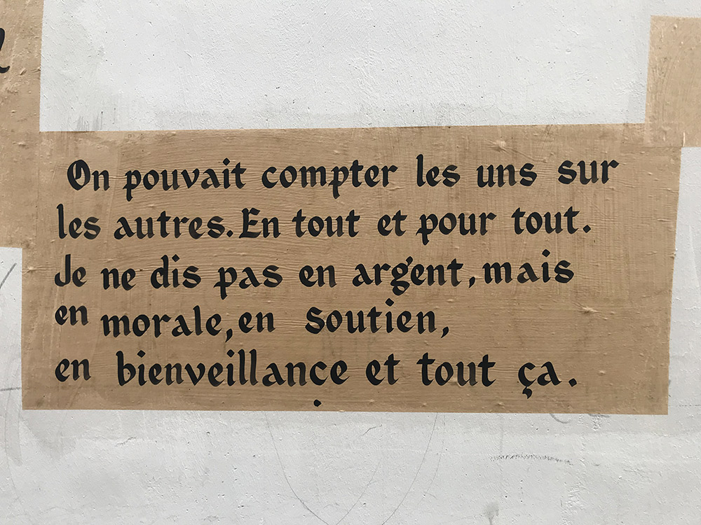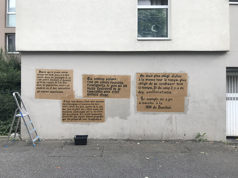 Suite à de nombreuses prises de sons avec Moan, j'ai pu retranscrire les entretiens en texte et les donner à lire. Les calligraphies ont été réalisé en médiathèque.
